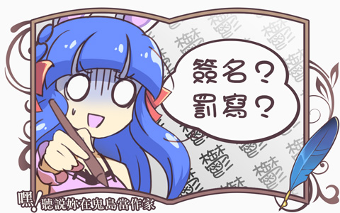 如此誠摯地對我的手道歉之後,我就開始研究筆名要怎麼簽,最後是鬼畫符定案。當初只是想說先這樣頂著用,但是後來就這樣得過且過地用到現在……不過我相信有天會進化的(握拳